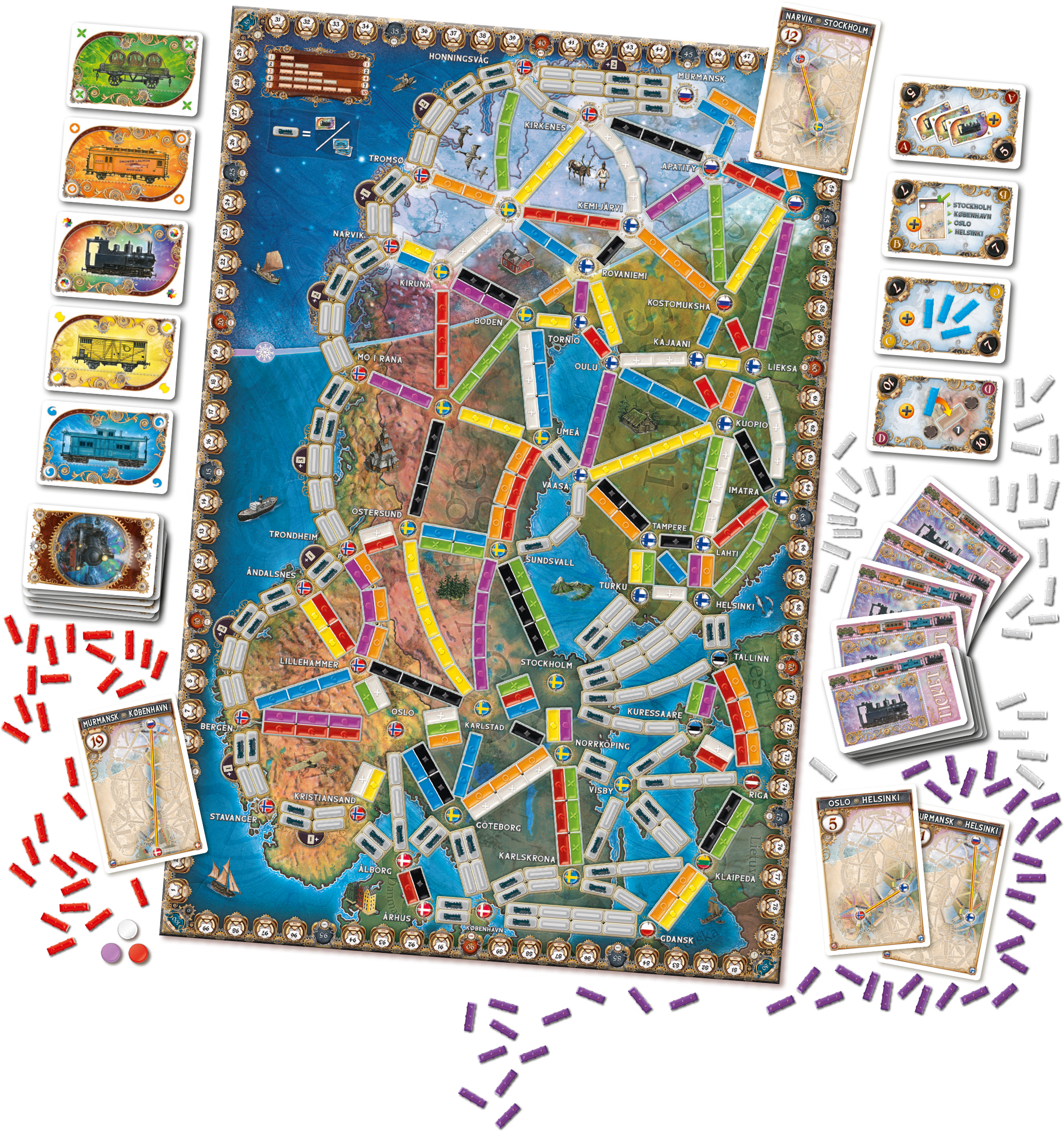 Zbierz przyjaciół i wspólnie wybierzcie się w podróż przez Danię, Norwegię, Szwecję i Finlandię, by odwiedzić ich najpiękniejsze zakątki, odkryć tętniące życiem stołeczne miasta portowe, a za kołem podbiegunowym rozkoszować się widokiem fiordów. Zbudujcie linie kolejowe prowadzące przez wioski, lasy i góry, które czynią ten obszar tak wyjątkowym. Wyznaczcie trasy promów przez Turku czy kolorowe Bergen i zawalczcie o stworzenie najprężniej działającego przedsiębiorstwa transportowego w regionie!